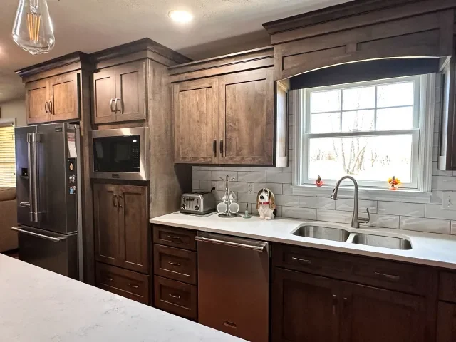Each cabinet is crafted for durability using high-grade plywood, solid wood, and professional-grade hardware that withstands daily use while maintaining their appearance through temperatures that rarely drop below 46°F or exceed 78°F. We also handle pantry and general storage cabinet construction to keep your kitchen organized, understanding that efficient storage is crucial in a city where maximizing home value and functionality matters.